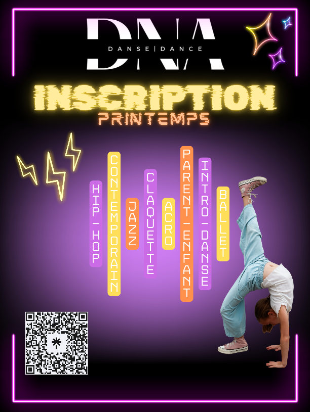 Intro danse 1 et 2, Intro Acro, Acro 1B, Hip Hop 1 et Hip Hop 2, Jazz 1 et 2, Contemporain 1 et 2 et Claquette